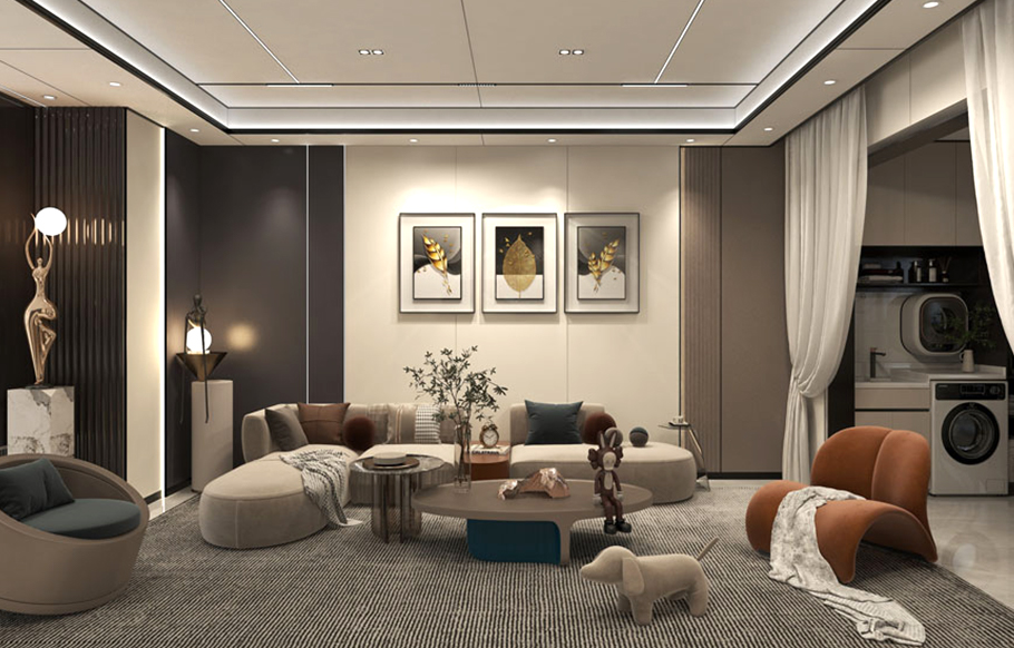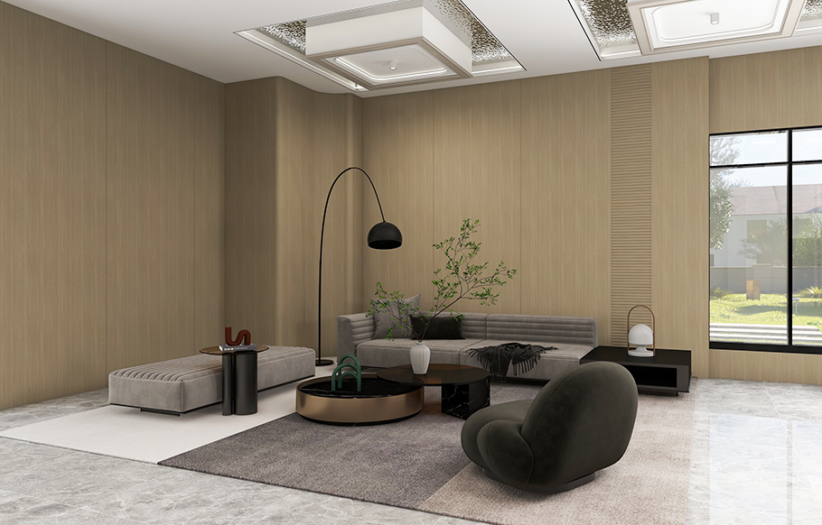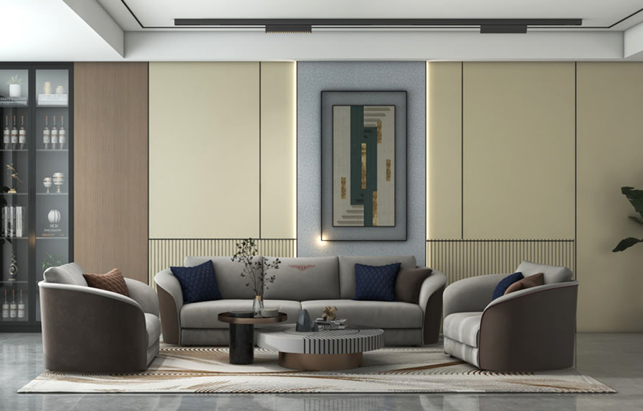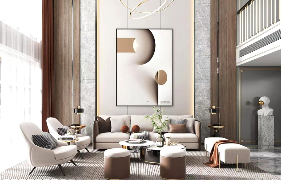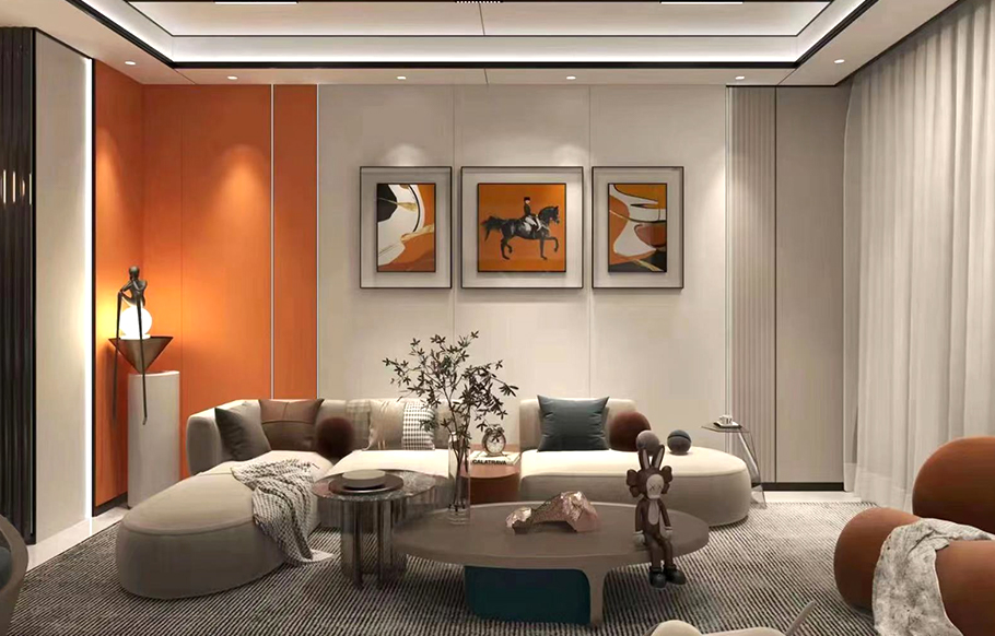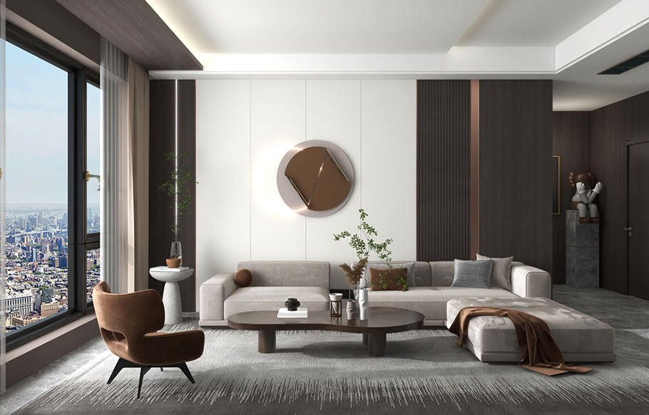 ผนังห้องนั่งเล่นในบ้านดูเพล็กซ์