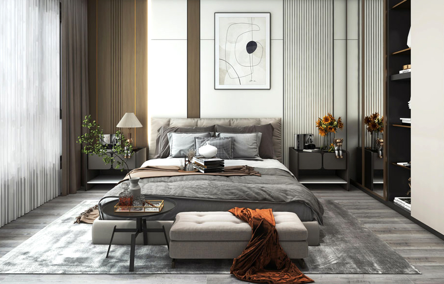 ของตกแต่งบ้านห้องนอนมีผนัง